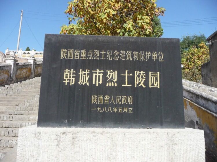 韩城市烈士陵园位于陕西省韩城市金城区陵东路1号,为陕西省重点烈士纪念建筑物保护单位和陕西省国防教育基地。1957–1959年,韩城市人民政府在圆觉寺遗址上兴建了韩城烈士陵园,陵园总占地六十三亩,东西宽约300米,共建有东西陵五个墓区,安葬着469名烈士。这些烈士中外籍烈士61名,本籍烈士72名,以及无名烈士336名。面对只有编号没有英名的烈士,人们已无法考究他们的身世,但人民会铭记他们把身驱捐给了共和国的新生,会知道共和国的旗帜上有着他们血染的风采。