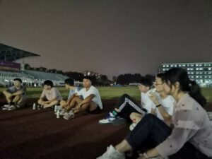 在活动过程中,姜汇川同学用尤克里里弹奏演唱了《歌唱祖国》,同学们用手为其打节拍,轻轻哼唱“歌唱我们亲爱的祖国,从今走向繁荣富强…”,悠扬的旋律环绕在二运的一个角落。一曲唱罢,姜汇川同学又为大家带来了《好汉歌》,同学们一唱一和,将气氛推至高潮。