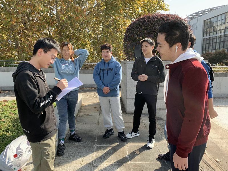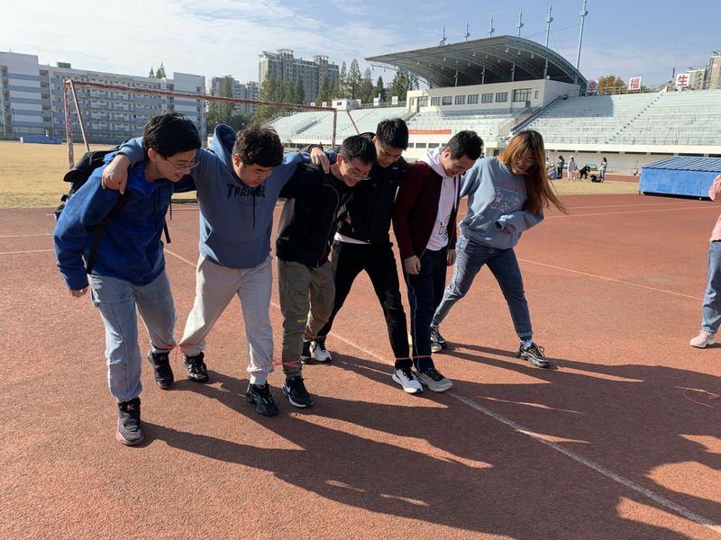 全班同学踊跃参与了活动。上午八点四十分,同学们在四工门口准时集合,趣味素拓活动正式开始。本次活动在二运、图书馆北、篮球场、校风碑、时间广场五个地点分别设置了“多人绑腿跑”、“快速反向指”、“投篮”、“猜词”等趣味活动项目,同学们被随机分为5个小组,完成所有任务用时最短的小组将获胜。