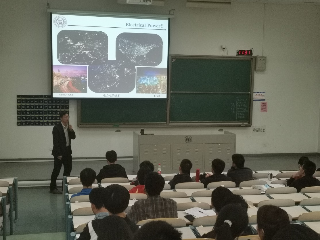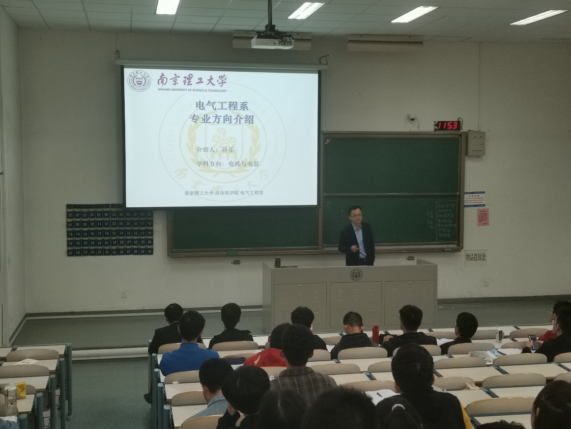 首先,李磊教授对电气工程及其自动化这一专业进行了简要的概括和介绍。随后,权浩、杨飞、孙乐、单梁四位老师分别就电力系统、电力电子、电机与电器、电工理论四个方向从学科历史、课程设计、就业前景、学科应用等为同学们介绍。